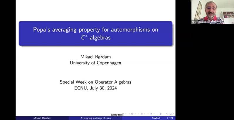 7月30日,哥本哈根大学的Mikael Rørdam教授线上作了题为《Popa’s averaging property for automorphisms on C∗-algebras》的学术报告。本场报告由林华新教授主持。