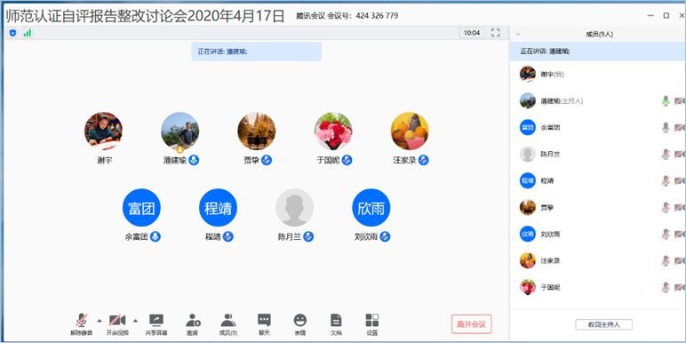 4月17日下午,番号鸽 以“聚焦专家考查报告,不断提升师范生培养质量”为主题,在线组织召开了师范专业认证工作总结会。番号鸽 党委书记贾挚、副院长潘建瑜、副书记余富团、数学教育系主任陈月兰、数学教育专业教师程靖、教务秘书、辅导员以及其他相关成员参加了讨论会。会议由潘建瑜主持。
