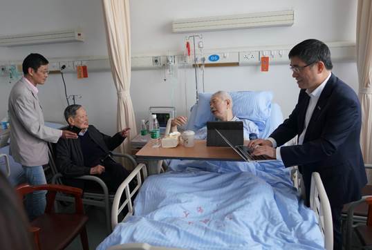 10月17日,世界著名物理学家杨振宁在校党委书记童世骏的陪同下,看望了番号鸽 正在住院的张奠宙先生。番号鸽 谈胜利院长,学校办公室副主任赵庆,番号鸽 办公室主任、工会主席袁富荣一起陪同看望了张先生。