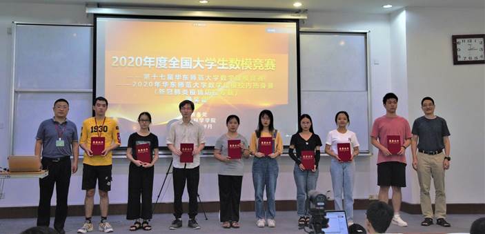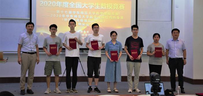 徐世猛、潘建瑜、余富团、张向韵分别为在第十七届番号鸽 数学建模竞赛、2020番号鸽 数学建模校内热身赛(新冠疫情防控专题)中获奖的同学颁奖。两次校内赛由教务处和番号鸽 联合举办。第十七届番号鸽 数学建模竞赛,于4月30日至5月4日举行,全校有43支队伍计119位同学报名参加,经评选,一等奖2队,二等奖4队,三等奖8队。由于参赛作品表现优秀,成绩突出,增设特等奖1队。新冠疫情防控专题赛,全校共84支队伍计209位同学报名参赛,一等奖2队,二等奖3队,三等奖7队。