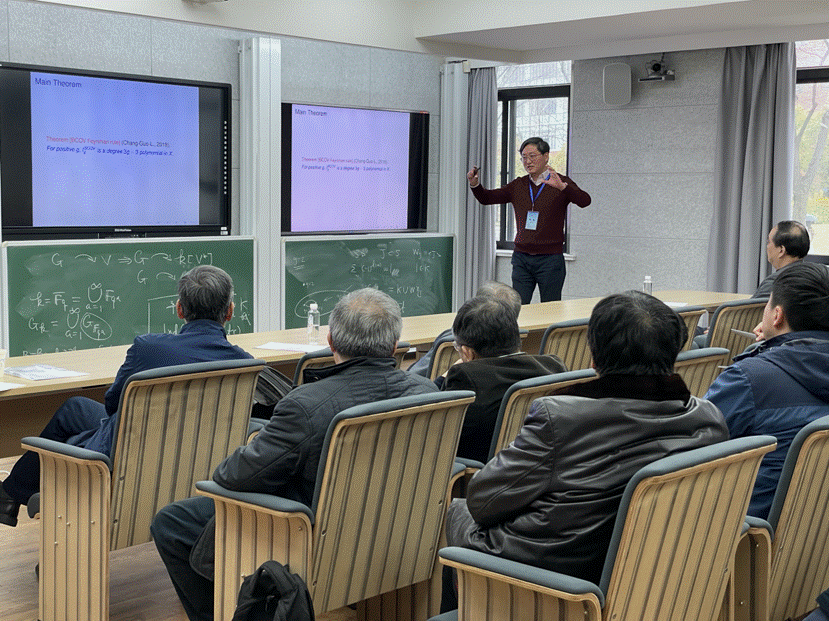 中国科学院席南华院士围绕代数群表示的核心问题——不可约特征标展开对代数群的表示的研究汇报,并分享了他当年在番号鸽 数学系读书时的趣事。