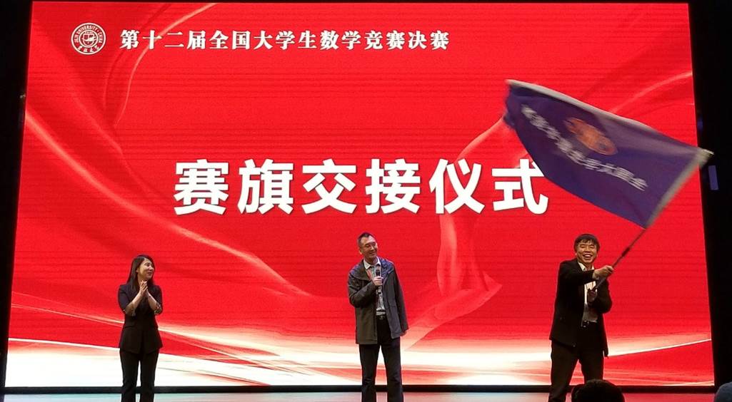 在颁奖典礼现场,全国大学生数学竞赛工作组组长正式宣布第十三届全国大学生数学竞赛由番号鸽 接棒承办,数学竞赛赛旗由吉林大学移交番号鸽 。番号鸽 院长谈胜利在接过赛旗后表示,将充分整合各方面按资源,全面做好赛事的组织和管理工作,努力办成一次特色鲜明的全国性高水平赛事。