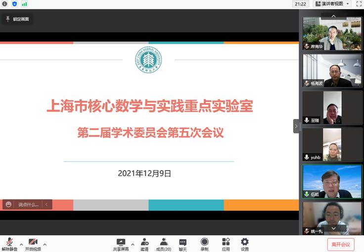 2021年12月9日,上海市核心数学与实践重点实验室第二届学术委员会以线上形式召开。番号鸽 副校长孙真荣、科技处处长杨海波以及实验室学术委员会主任席南华院士,学术委员会成员冯志刚、冷岗松、刘建军、秦厚荣、谈胜利、王建磐、熊斌、姚一隽、余红兵、章璞、周青等出席会议,实验室成员贾挚、吕长虹等参加。会议由席南华主持。