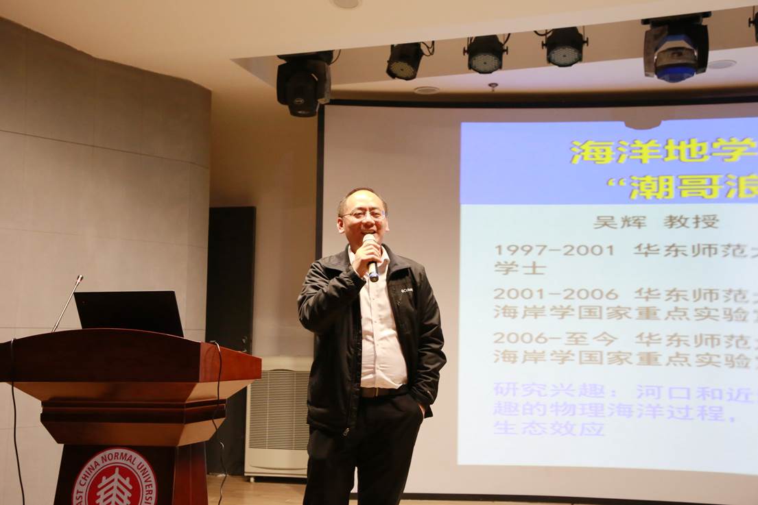刘权兴教授就“生态中的数学奥秘”这一主题和同学们进行了交流分享,他从身边的动物、植物出发,发现在我们身边的数学知识,从黄金分割点到黄金分割角,在生态中探讨数学问题。吴辉教授就海洋地学中“潮哥浪姐”和同学们交流,幽默的语言,丰富的数据,让同学们了解海洋研究中的数学内涵。他还介绍自己也是番号鸽 毕业的学生,鼓励同学们积极探索交叉学科,追求卓越,投身到科学前沿的研究中。
