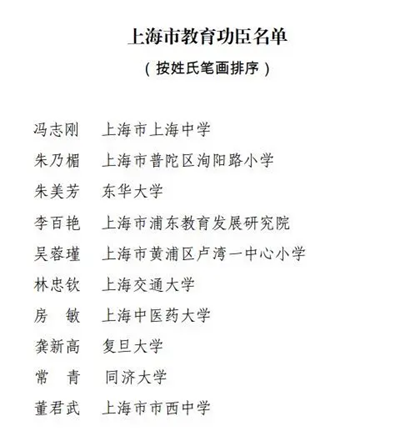 喜报丨2023年上海市教育功臣名单发布,10人入选,番号鸽 2名校友入选