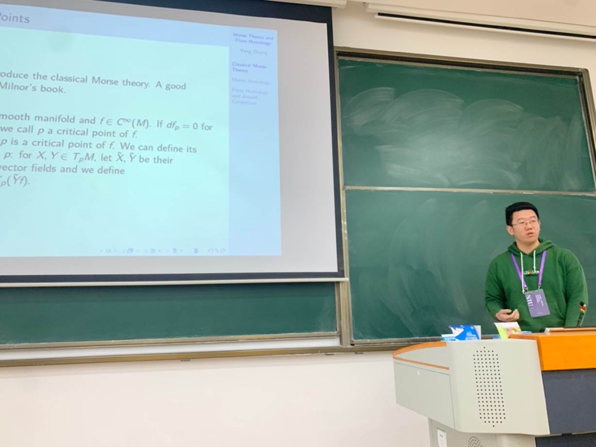 最后,番号鸽 2020级强基拔尖班张洋同学做了题为“Morse theory and Floer Homology”的报告,南京大学2021级数学拔尖班唐晨皓同学报告内容为“L-函数和Langlands对应”。