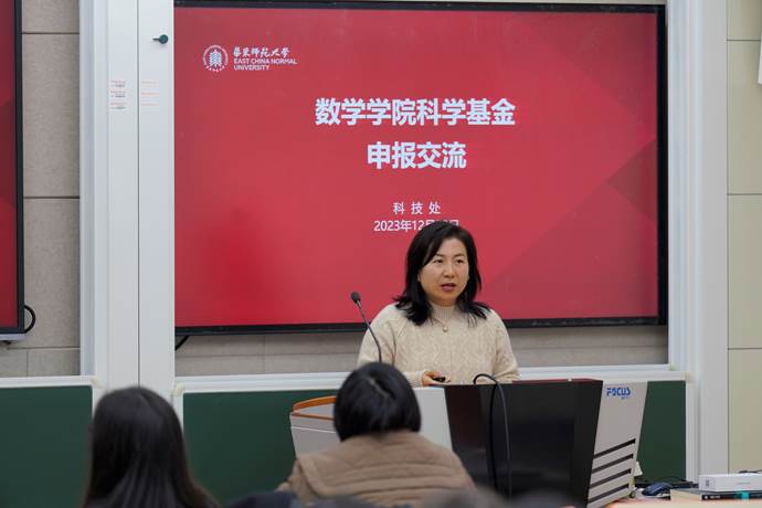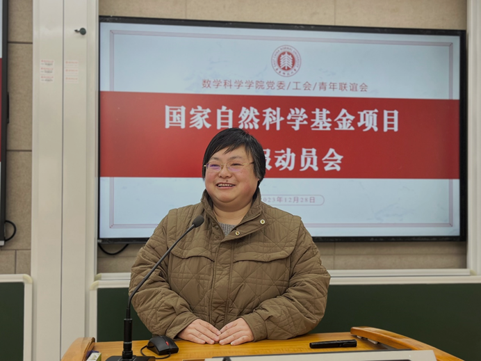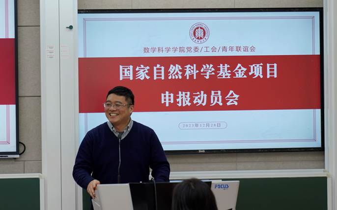 2023年12月28日下午,学院工会和青年联谊会联合举办的2024年国家自然科学基金项目申报动员会在数学楼401报告厅进行。上海大学数学系主任、国家自然科学基金委数理学部数学科学处原流动项目主任张红莲做经验分享,华东师大科技处处长杨海波、国家自然科学基金项目主管陈美现场指导。学院党委书记贾挚、青年联谊会会长黄侠及部分教师参加会议。会议由副院长罗栗主持。