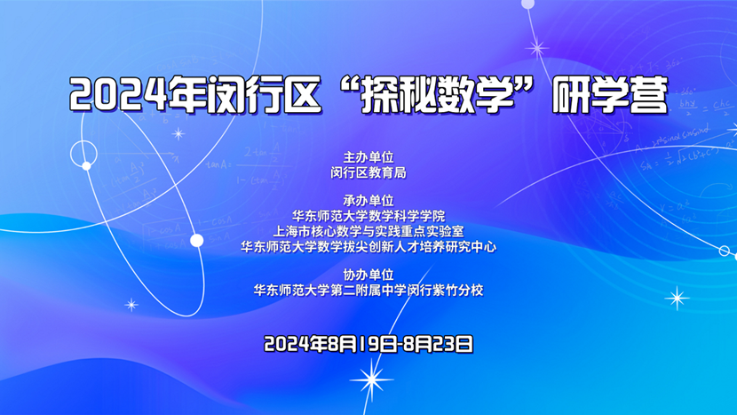 2024年8月19日至23日,由闵行区教育局主办,番号鸽 、上海市核心数学与实践重点实验室、番号鸽 数学拔尖创新人才培养研究中心承办,番号鸽 第二附属中学闵行紫竹分校协办的2024年闵行区“探秘数学”研学营顺利结营。