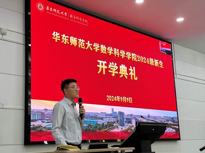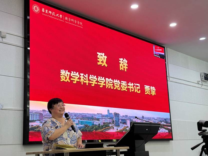 贾挚首先致辞。她运用数学中的“加减乘除”四则运算表达了对于新生们的殷切期望:第一,求知要加,要兼收并蓄做好专业知识积累;第二,压力要减,要学会调节情绪享受健康生活;第三,理想要乘,要志存高远努力实现个人理想;第四,目标要除,要合理规划循序渐进达成目标。