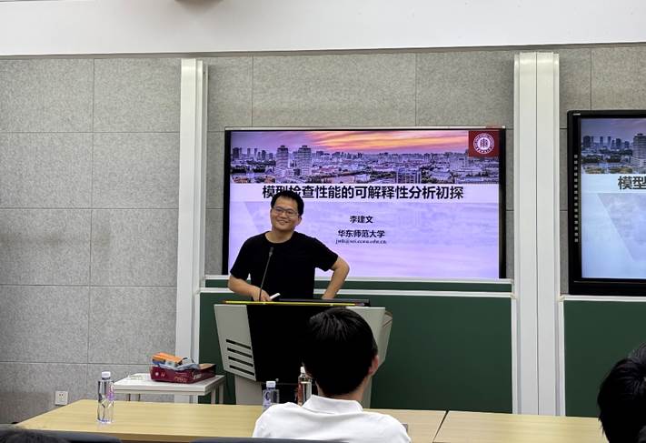 软件工程学院李建文教授以《模型检查性能的可解释性研究》为题,探讨了如何提升复杂系统验证的透明性。