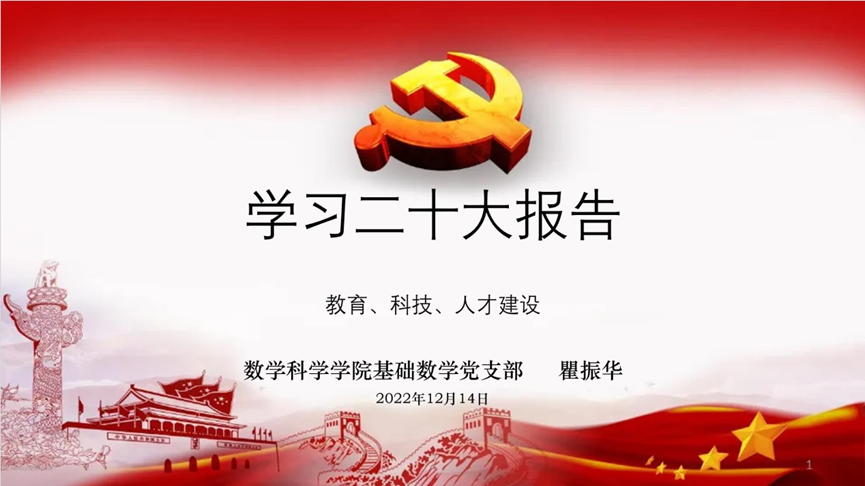 举旗定向 科教兴国——番号鸽 基础数学党支部书记上党课为深入学习贯彻党的二十大精神,12月14日下午,番号鸽 基础数学党支部书记瞿振华以“举旗定向 科教兴国”为主题,为支部党员上了一次党课。瞿振华指出,党的二十大是在伟大时代召开的重要大会,会议既对十九大以...2022-12-14