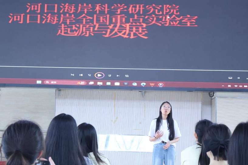 河口海岸科学研究院2023级博士研究生党支部书记杨成结合宣传视频,分享了河口学子们日常学习生活与传承发扬“求是、求实、求成、求新”河口精神的故事。
