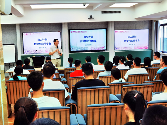 8月31日,学业指导工作坊之“党员教师与新生面对面”活动举行。专业课党员教师和非党员教师庞学诚、王丽萍、罗栗、张通和朱萌、瞿振华、黄侠、罗马等一起,分别为非师范生和师范生做专业学习前适应辅导。八位老师分别为同学们分析了大学数学专业课程的特点和大学与高中阶段学习的区别,指出了学习中的注意事项,强调了在学习方法上要实现从被动学习到主动学习的转变,要积极主动地与老师或同学交流,思维方式上也要从注重知识接受向力求创新转变,找准适合自己的学习方法。与会老师还一一解答了同学们的现场提问。