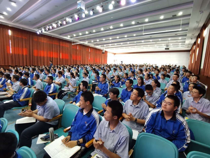 瞿振华为高一、高二年级部分学生做了题为《数学竞赛中的组合问题》讲座。瞿振华首先结合自己的学习经历,生动地讲解了学习数学的方法及解题的一般方法,然后借一道典型的组合问题讲解了解决此类问题的三种基本方法,最后将新讲的方法应用于一道联赛真题。瞿振华深入浅出的讲解让一些没有竞赛经验的学生也听得津津有味,一直学习数学竞赛的学生更是如饮甘露。