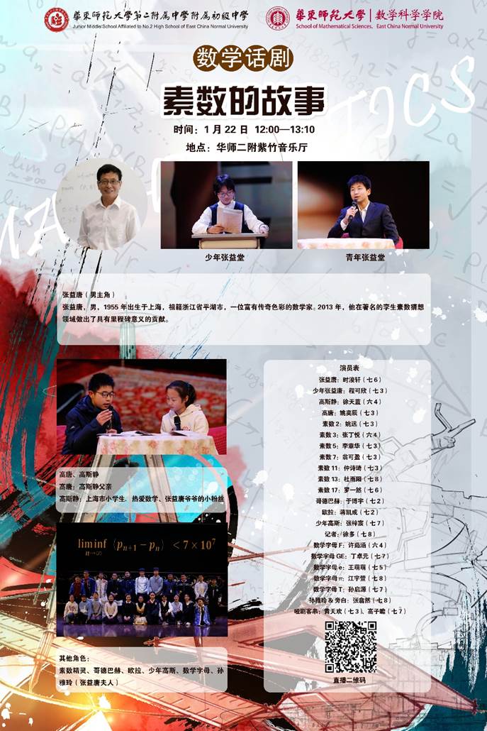 不是每一个伟大的数学家都拥有跌宕起伏的人生,不是每一个伟大的数学家都有津津乐道的故事。也许,正在是一日复一日的平凡中,为梦想去努力,为热爱去坚持,才是最动人最直击心灵的故事。《素数的故事》这部原创话剧所要传达的数学的情感与温度,我想,也正在于此。未来,值得我们每一个同学去努力坚持与奋斗!”