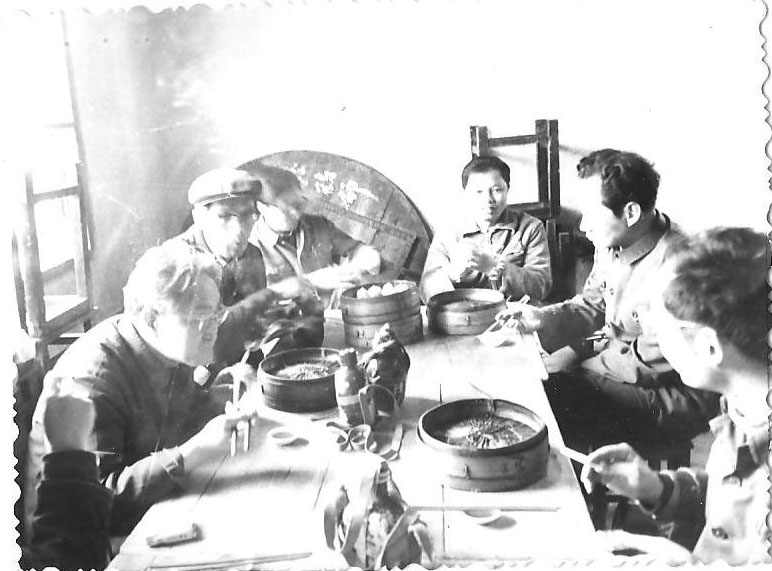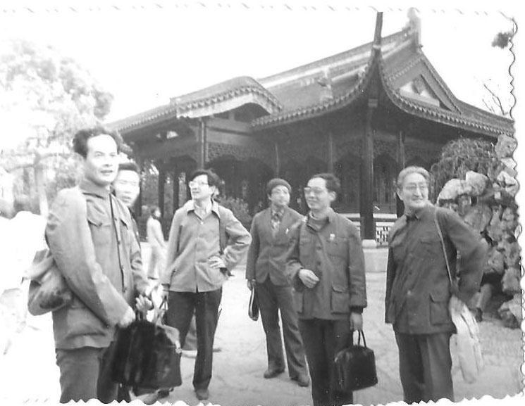 1985年4月曹先生参加系工会组织的青年教师自行车旅游(参见胡启迪的回忆文章), 左图左起:周延昆,许鑫铜,胡启迪,杨正翔,顾鹤荣,曹锡华;右图左起:曹锡华,郑毓蕃,毛羽辉,林武忠,周延昆,顾鹤荣: