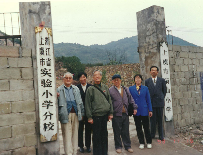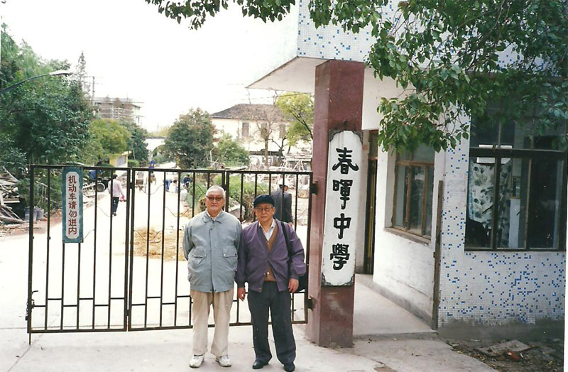 访问母校:左图是和弟弟曹锡澄摄于春晖中学,右图是菊仙小学(与哥哥曹锡光和弟弟曹锡澄等)
