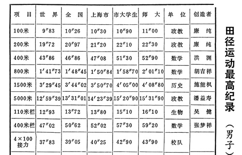 在20世纪50年代和60年代“文革”前,数学系和中文系是华东师大的两个大系,也是学校的两个体育强系。以下是数学系当年的体育成绩。