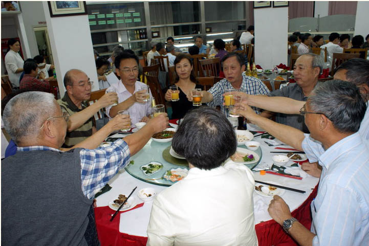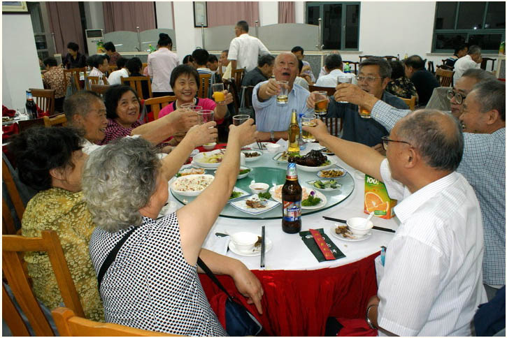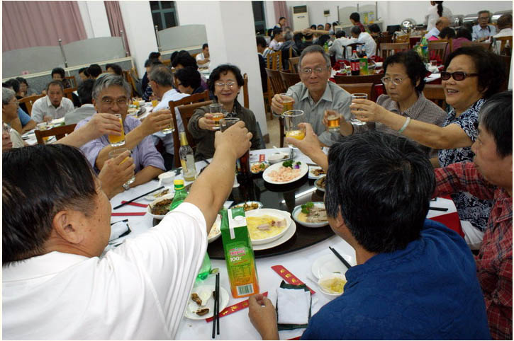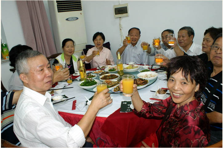 3. 聚餐:选点在丽娃河畔的一座新建的留学生中心。同学们边就餐边继续畅谈了五十年来的风风雨雨,讲的人热情奔放,听的人津津有味,沉浸在欢乐之中, 回家的感觉油然而生。窗外是不变的丽娃河,席间却都已是古稀人。虽然年少已不在,别忘了第二春才刚刚开始。