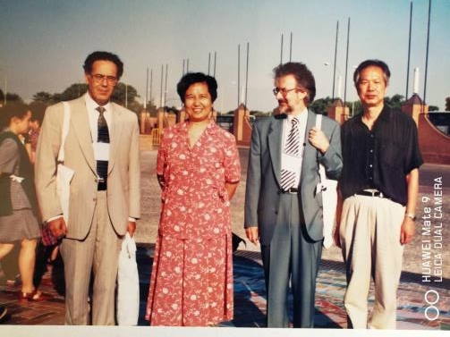 1996年我和张奠宙老师在西班牙参加第8届国际数学教育大会期间与国际数学教育委员会主席(左1)和秘书长(左3)合影