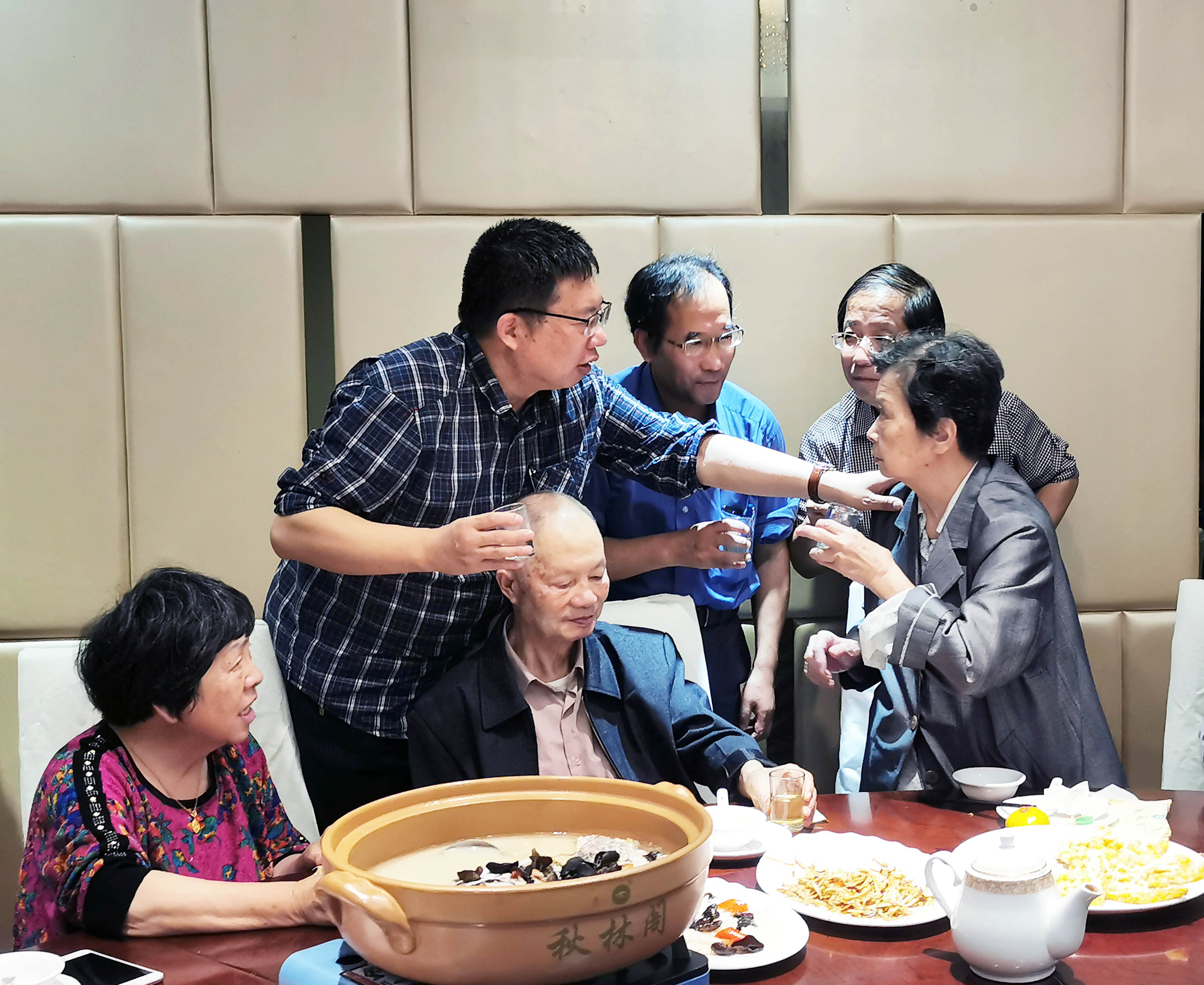 数学系微分方程组成立于1960年上半年,至今前后已有六十年之久。当天,曾在方程组共事并同铸辉煌的老师与研究生,大家欢聚一堂,畅叙方程组的往事与情谊,共同祝愿方程组的元老陈美廉先生生日快乐!健康长寿!
