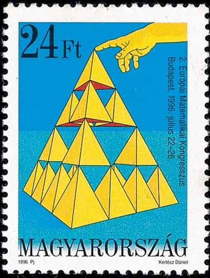 图 6(左): 角锥(加拿大邮票); 图 7(右): 角锥堆积(匈牙利邮票)