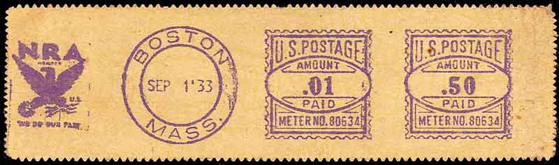 图 3(左):比利时; 图 4(右):1933年美国邮资机戳
