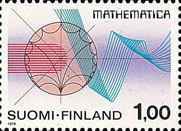 第 18 届国际数学家大会于 1978 年在芬兰的赫尔辛基召开, 图 2 是芬兰邮政发行的一枚纪念邮票, 图案为``模结构''的部分几何图形, 同时在邮票上首次出现``MATHEMATICA''(数学)一词.